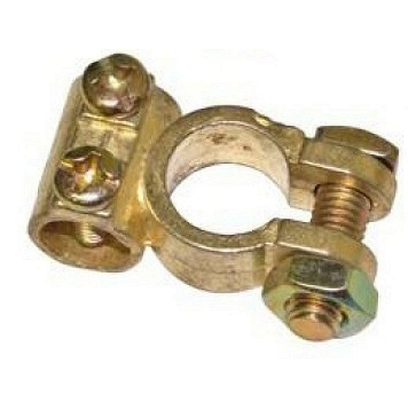 Erősített kivitelű pozitív akkumulátor saru, derékszögű kábelbefogatással. Alapanyag : réz