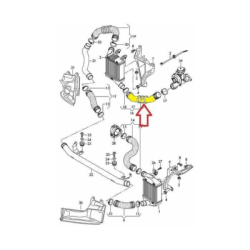 Funkció: levegő áramoltatása a turbó és az intercooler között