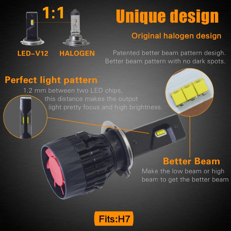 Rendkívül hatékony megvilágítás, ami annak köszönhető, hogy a LED fényforrás mértani elhelyezése tökéletesen megegyezik a gyári halogén égő izzószálának az elhelyezésével.