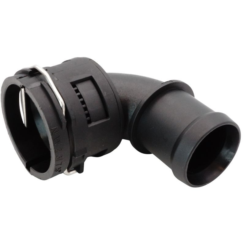Ez a prémium minőségű BMW hűtővíz könyökcső csatlakozó, más néven vízperem vagy water flange, kulcsfontosságú alkatrész a hűtőfolyadék szivárgásmentes áramlásához. A mellékelt képen látható 90 fokos kialakítású csatlakozó gyorscsatlakozós véggel és integrált tömítési megoldással készül, így ideális választás elöregedett, repedt vagy szivárgó hűtőrendszeri elemek cseréjére. A delman.hu kínálatában elérhető alkatrész segít megelőzni a hűtőfolyadék-veszteséget, a nyomásproblémákat és a túlmelegedésből eredő komolyabb motorkárosodásokat.