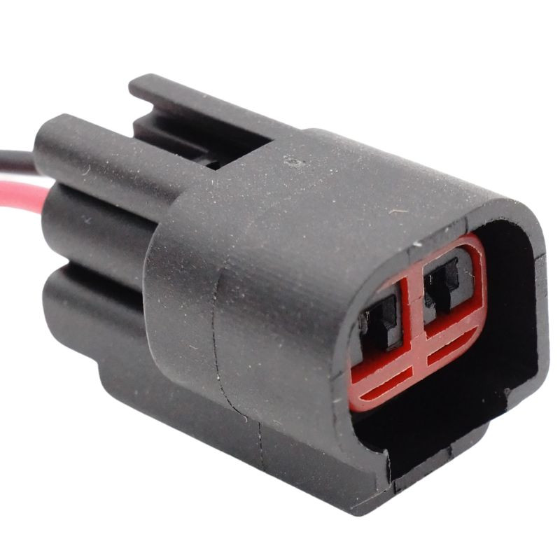 A csatlakozó 2-pólusú kivitel, időjárásálló vízálló burkolattal és piros színű belső tömítéssel. A kialakítása erős reteszeléssel védi a kontaktpontokat és kiválóan illeszkedik a Ford COP gyújtótekercsekhez. Tartós műanyag ház, megerősített vezetékcsatlakozások és jó hőállóság jellemzi. A csatlakozó 0,5–1 mm² vezetékmérethez ideális.