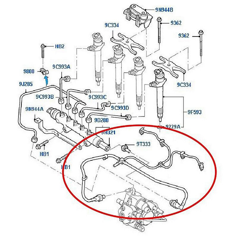 A résolajcső hibája – például repedés, ridegség vagy csatlakozási pont szivárgása – üzemanyag-szivárgást, nehéz indulást, egyenetlen járást vagy motorteljesítmény-csökkenést okozhat. A megfelelő visszafolyó cső cseréje helyreállítja az üzemanyagrendszer nyomáskiegyenlítését és megakadályozza a veszteségeket. A 8C1Q9K022AC cikkszámú visszafolyó cső egyszerűen beépíthető, és tökéletesen illeszkedik a megadott típusokhoz.