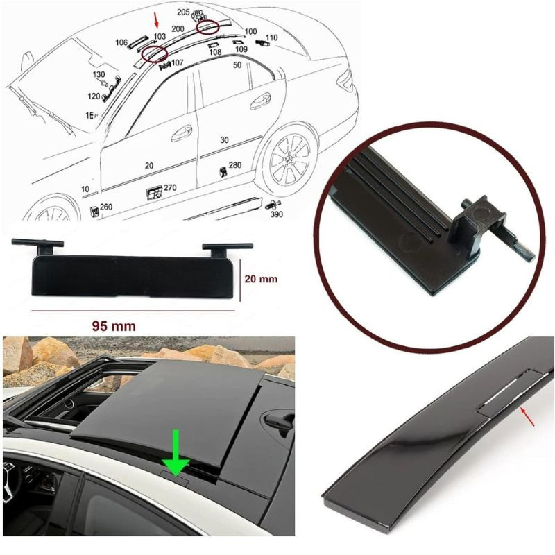Ez az alkatrész orvosolja a "hiányzó tetőmolding takaró", a "letört zsanér" és a "nyitott tetőcsomagtartó rögzítési pont" hibáit. Megszünteti azt a látványos esztétikai hiányosságot, amely rontja a Mercedes-Benz prémium megjelenését, és megvédi a rögzítőcsavarok furatait az oxidációtól, amely megnehezítené a tetőcsomagtartó keresztlécek felszerelését vagy cseréjét.