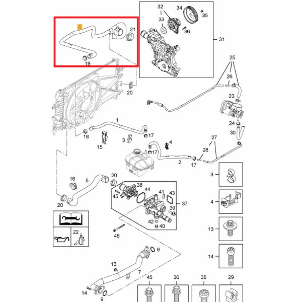 Elhelyezkedés: Alsó hűtővízcső