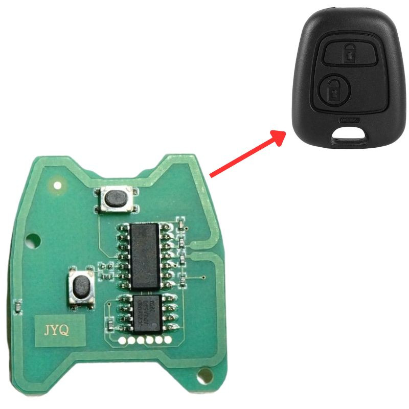 Ez a 2 gombos, 433 MHz-es, ID46 chippel ellátott távirányítós kulcs kiváló alternatíva a Peugeot, Citroën és Toyota modellekhez.