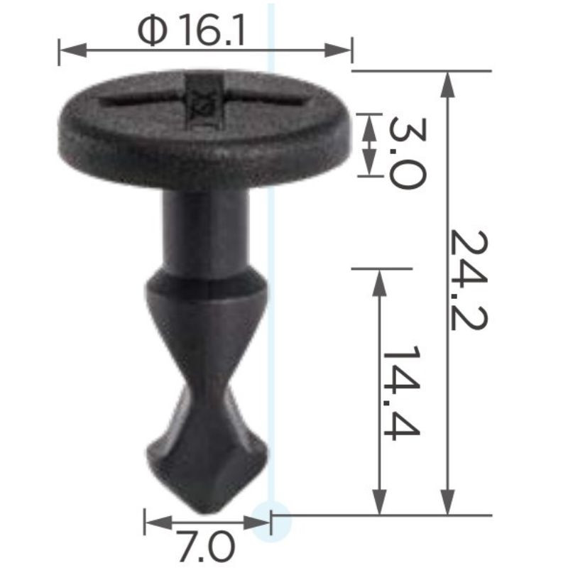 • Méretek: Fej 16.1 mm, szár 24.2 mm, átmérő 7 mm