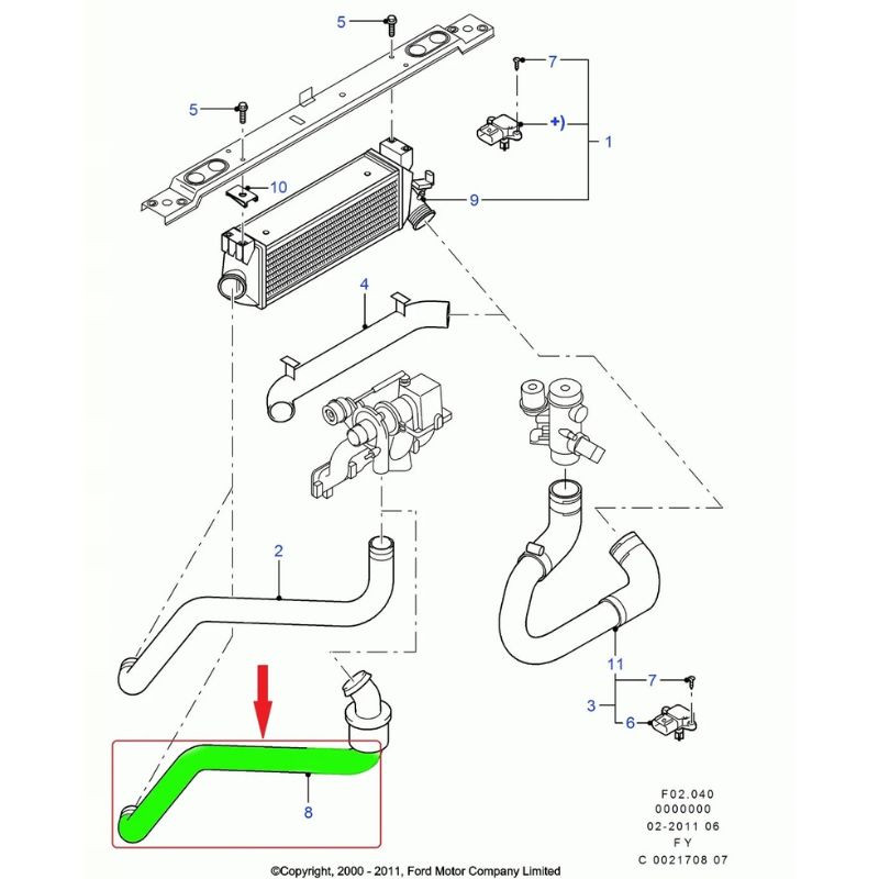 A prémium töltőlevegő hűtő cső az alábbi FORD cikkszámokkal kompatibilis: