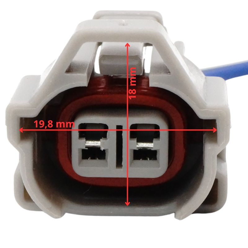 A csatlakozó 2-pólusú anya kivitel, vízálló és időjárásálló burkolattal. A belső szilikon- vagy gumi tömítés védi az érintkezőket a nedvességtől és portól. Denso / Sumitomo jellegű kialakítása miatt kiválóan illeszkedik japán injektorokhoz és érzékelőkhöz. A csatlakozó erős reteszelőfüllel rendelkezik, amely megakadályozza a véletlen szétcsatlakozást. A vezetékekhez 0,5–1 mm² keresztmetszetű kábelek javasoltak.