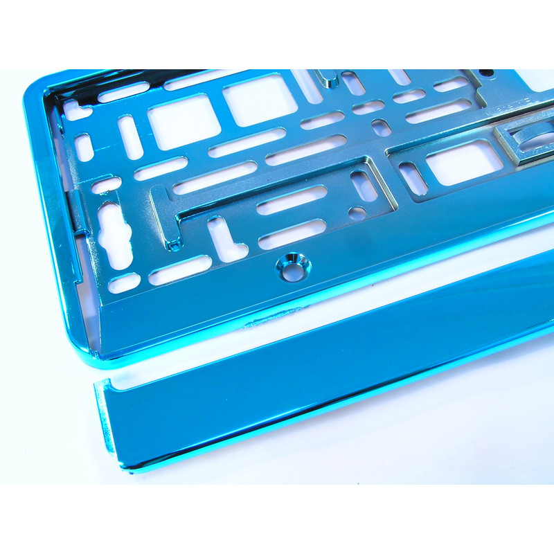 Ez a prémium minőségű fémgőzölt rendszámtábla tartó keret elegáns, magasfényű megjelenést biztosít járműve számára türkiz kék színben. A vákuumfémezési technológiával kialakított felület polírozott fémhatást kölcsönöz, amely harmonikusan illeszkedik a krómozott és fényes autótartozékokhoz. A rugalmas polipropilén alapanyag tartósságot és ellenállóságot biztosít a mindennapi használat során. A delman.hu kínálatában elérhető rendszámkeret esztétikus és hosszú távon megbízható megoldás rendszámtáblája rögzítéséhez.