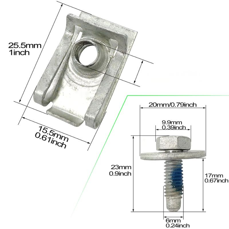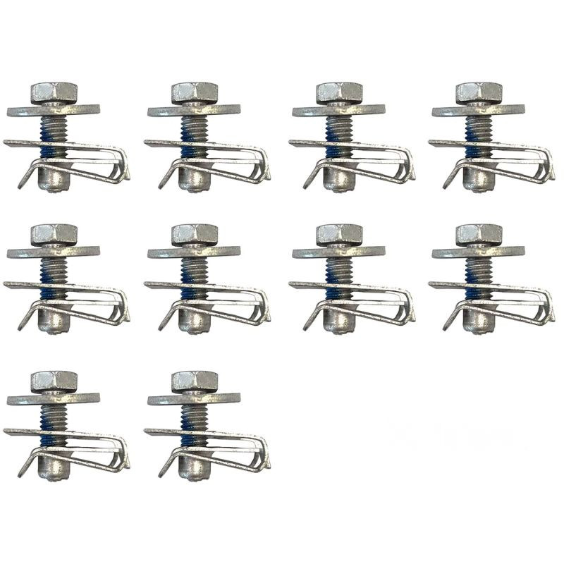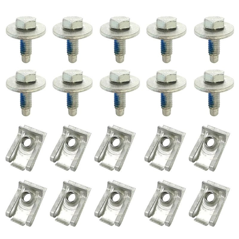 A delman.hu kínálatában elérhető prémium univerzális alváz burkolat rögzítő szett ideális megoldás a motorburkolatok, sárvédő betétek és egyéb alvázon található műanyag elemek biztonságos rögzítésére. A 20 darabos készlet (10 db M6-os csavar és 10 db U-alakú patent) kiválóan helyettesíti a korrodált, elveszett vagy sérült rögzítőelemeket. A prémium acélcsavarok kék menetrögzítő réteget kapnak, amely megakadályozza a rezgés miatti kilazulást, így tartós és stabil rögzítést biztosít minden járműnél.