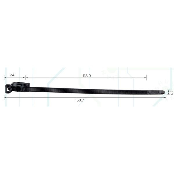 Univerzális kábelköteg rögzítő bilincs, amelyet a jármű elektromos kábeleinek biztonságos és rendezett rögzítésére terveztek.