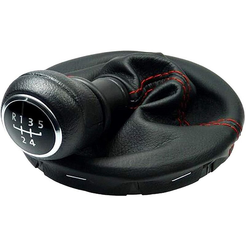• VW Transporter / Multivan váltószoknya és váltógomb – 5 sebességes, fekete/piros varrás (kerettel)