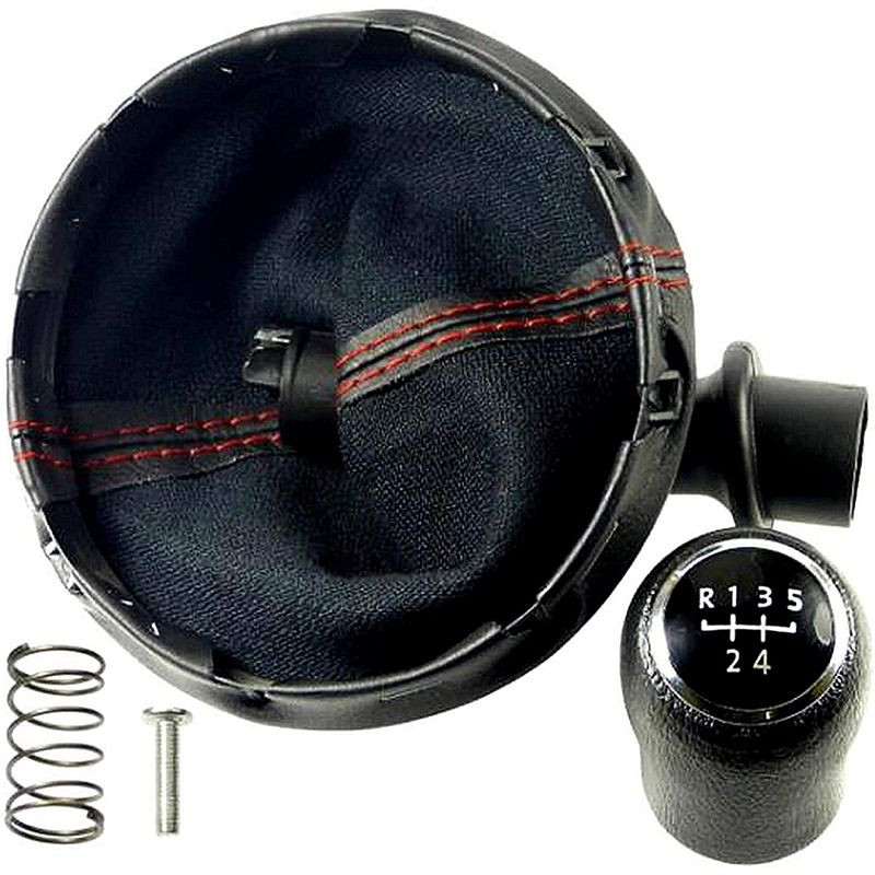 A delman.hu prémium váltószoknya és váltógomb szettje VW Transporter és Multivan modellekhez készült. Sportos fekete műbőr piros varrással, 5 sebességes fekete váltógombbal, 140 mm-es kerettel – 100%-os gyári illeszkedés.