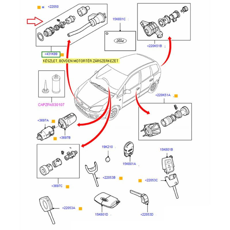 • Ford Focus (CB4, 2008–2011) – motorháztető zár