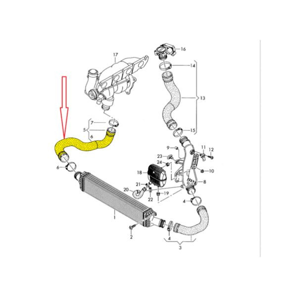 Ez a prémium minőségű intercooler cső az Audi Q5 2.0 TDI motorjaihoz készült, melyeknél kiemelten fontos a töltőlevegő akadálytalan és stabil áramlása az intercoolertől a motor felé. A cső kialakítása biztosítja, hogy a turbónyomás megfelelően felépüljön, elkerülve a teljesítményvesztést, ingadozó gyorsulást vagy a gyakori levegőszivárgási hibákat. A delman.hu kínálatában elérhető alkatrész tartós, megbízható megoldás repedt, megkeményedett vagy olajpárás csövek cseréjére.