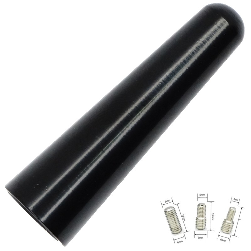 Ez az 5 cm hosszúságú, elegáns fekete színű antenna szár kiváló választás a gyári antennák helyettesítésére vagy rövidítésére. A letisztult, fényezett felületű kivitel stílusos megjelenést biztosít bármely jármű számára. Tartós alumínium és műanyag kombinációjából készült, így jól ellenáll az időjárás viszontagságainak és az autómosásnak is. Az adapterek révén többféle menettípushoz is kompatibilis.