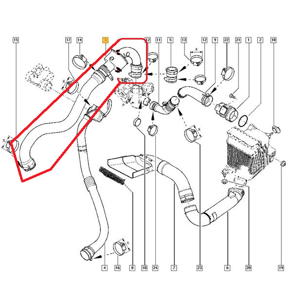 Ez a kiváló minőségű intercooler turbócső kifejezetten a Renault 1.5 dCi motorral szerelt modellekhez készült. A turbófeltöltő és az intercooler közötti szakaszban helyezkedik el, szerepe a sűrített levegő hatékony továbbítása a szívórendszer felé. A cső ellenáll a magas hőmérsékletnek és nyomásnak, valamint tartós kialakításának köszönhetően hosszú élettartamot biztosít. Ideális megoldás a régi, repedezett vagy szivárgó gyári cső cseréjére.