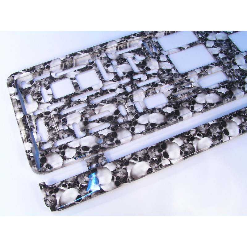 Rendszámtábla tartó keret mintás koponya Csomagolási egység : 1db (a feltüntetett ár 1db-ra értendő) Kiváló rugalmasság, hajlékonyság. (Polipropilén)