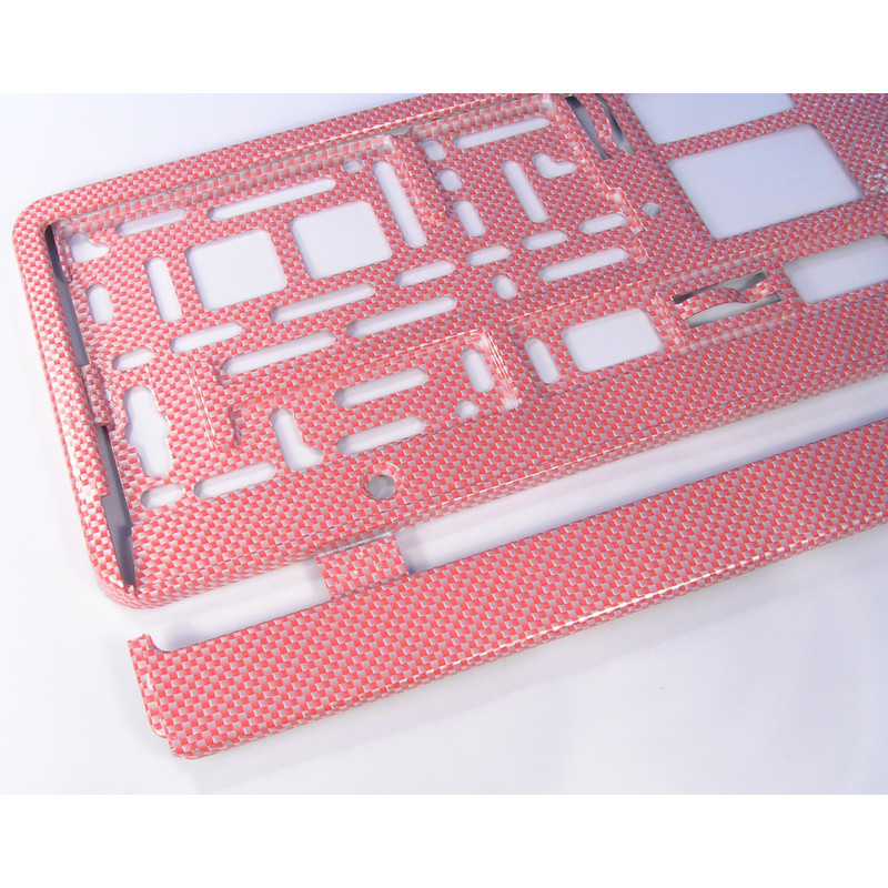 Rendszámtábla tartó keret mintás piros karbon Kiváló rugalmasság, hajlékonyság. (Polipropilén)