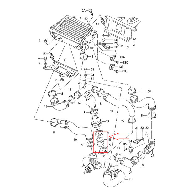 Beépítési hely: turbófeltöltő és intercooler között