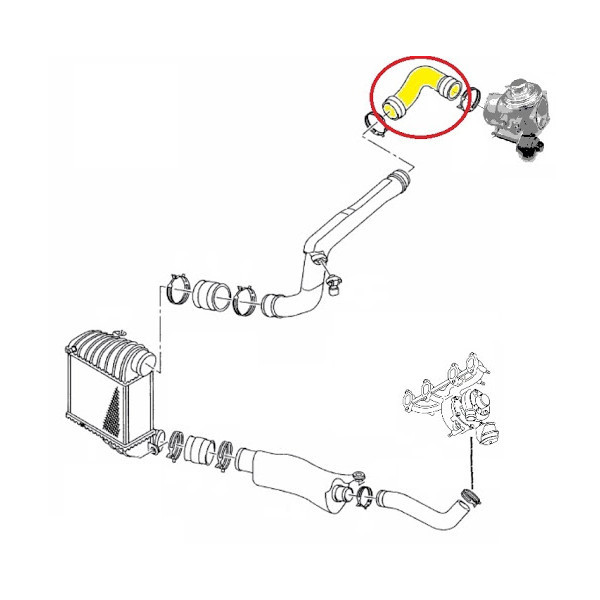 Kivitel: jobb oldali cső, a turbófeltöltőtől az intercoolerig
