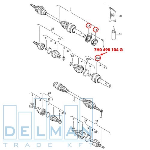 Féltengely Belső Vw Transporter T5 2,5PDTDi 7H0498104G.