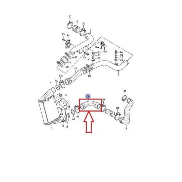 A prémium minőségű 3B0145834L intercooler cső az 1.8T és 1.9 TDI motorok töltőlevegő-rendszerének egyik kulcsfontosságú eleme. Feladata a turbóból érkező sűrített levegő hatékony továbbítása az intercooler felé, miközben biztosítja a stabil töltőnyomást és a szivárgásmentes működést. A delman.hu kínálatában elérhető cső erősített gumiból és fémperemes csatlakozóval készült, hogy ellenálljon a magas hőmérsékletnek, vibrációnak és olajgőznek.