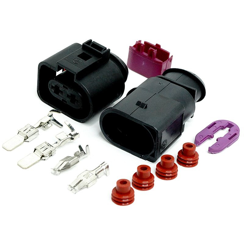 Ez a 2 pólusú üzemanyag befecskendező csatlakozó készlet ideális választás a járművek üzemanyagellátó rendszerének felújításához vagy javításához. A készlet 2 db csatlakozót, valamint 4 db 6,3 mm-es érintkezőt tartalmaz, így teljes körű megoldást kínál az üzemanyag befecskendezők elektromos csatlakoztatásához. A csatlakozók kompatibilisek a 1J0973852 és 1J0973752 cikkszámokkal, megbízható kapcsolatot biztosítva a rendszer kulcsfontosságú elemei között.