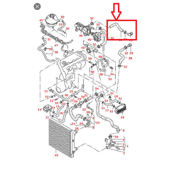 Rendelés előtt ellenőrizze a cikkszámot (1K0121157BR), valamint a csatlakozó kialakítását, mivel a hűtőrendszer csövei motorkódonként eltérhetnek.