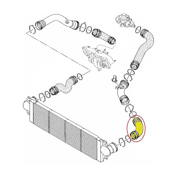 A prémium minőségű 7H0145790D intercooler cső a Volkswagen Transporter T5 2.5 TDI motorjaihoz készült, kifejezetten a turbófeltöltő és az intercooler közötti levegő útjának stabil, szivárgásmentes biztosítására. A delman.hu kínálatában elérhető alkatrész megbízható megoldást nyújt a gyakran repedésre és nyomásvesztésre hajlamos T5 gyári csövek kiváltására.
